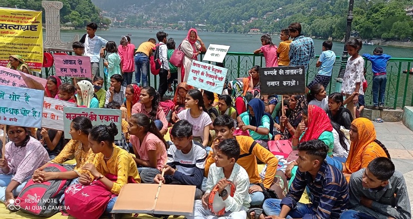 न्याय न मिलने पर इंटरार्क मज़दूरों के बच्चों का कुमाऊँ कमिश्नरी नैनीताल में बाल सत्याग्रह