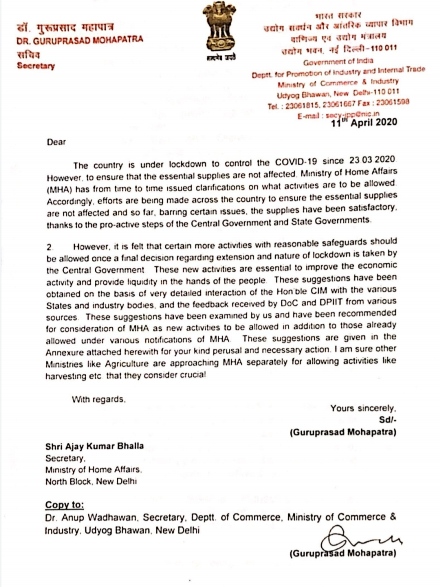 इसी अलोक में 11 अप्रैल को सचिव उद्योग संवर्धन और आतंरिक व्यापार विभाग, वाणिज्य एवं उद्योग मंत्रालय, भारत सरकार की तरफ से जो सूचना जारी हुई है, उसके मुताबिक, सरकार ने यह सुझाव दिया है कि देश के इलाकों को राज्यों की बजाय कोरोना के संक्रमण के स्तर के हिसाब से लाल, नारंगी और हरे क्षेत्र में बांटकर ढील संबंधी नियम तय किए जाएं। कोरोना के नारंगी और हरे क्षेत्र में बाजार खोले जा सकते हैं, लेकिन समय सीमित किया जा सकता है।