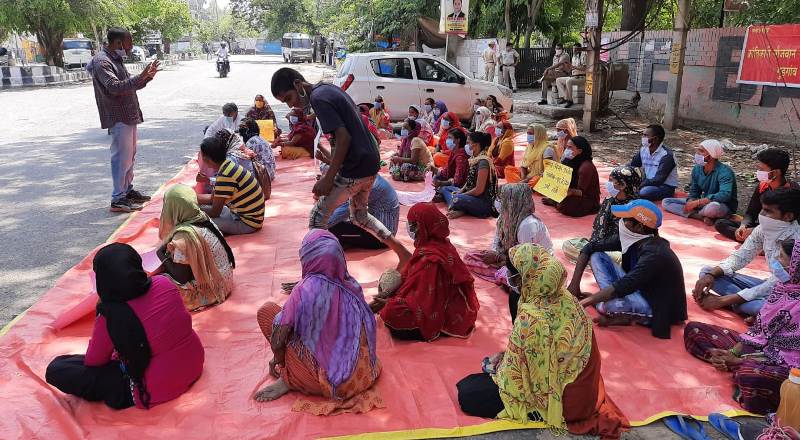 इफ्टू सर्वहारा दिल्ली के भरत विहार में महिला मज़दूरों द्वारा प्रदर्शन-
