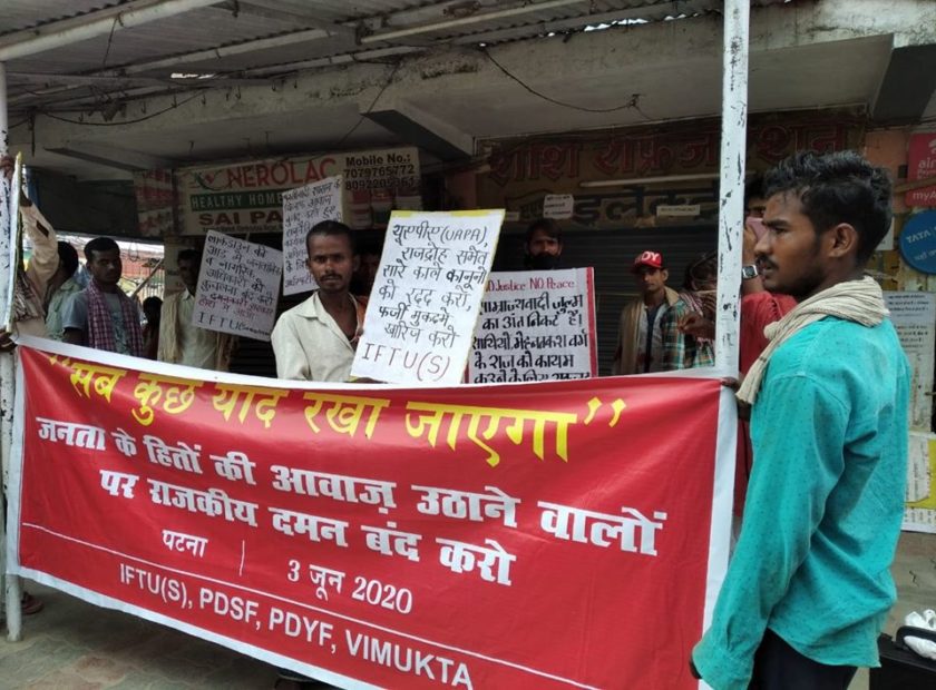 इफ्टू सर्वहारा, पीड़ीएसएफ, पीड़ीवाईएफ, विमुक्त द्वारा पटना, बिहार के भिन्न मज़दूर बस्तियों और मज़दूर चौकों पर विरोध प्रदर्शन-