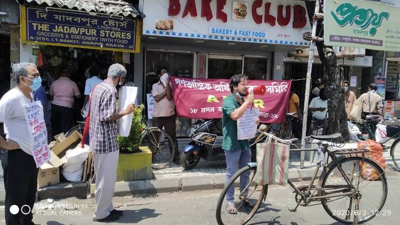 जादवपुर, कोलकाता में प्रदर्शन करते विभिन्न संगठन-