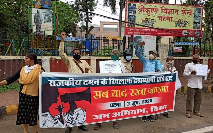 जन अभियान, बिहार, (बिहार में कार्यरत दस जनतांत्रिक एवं क्रांतिकारी संगठनों के साझा मंच) के तत्वावधान में श्रीकृष्ण विज्ञान केन्द्र, गांधी मैदान, पटना में विरोध प्रदर्शन का आयोजन-