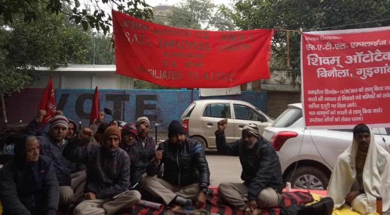 गुडगाँव। भयानक ठण्ड के बीच शिवम ऑटोटेक, बिनौला के मज़दूर विगत 12 दिसंबर से लगातार जिला सचिवालय, गुड़गांव में धरने पर बैठे हैं। अपनी यूनियन को बचाने, नेतृत्वकारी श्रमिकों के तबादले को रद्द कराने, तय समझौता को लागू करवाने, आदि माँगों को लेकर उनका संघर्ष चल रहा है।