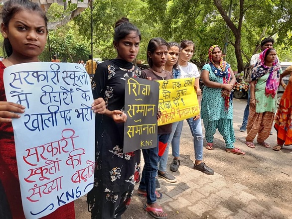कार्यकर्ताओं ने बताया कि 2021-22 में हरियाणा राज्य में 2 लाख से अधिक बच्चों ने निजी स्कूलों से नाम कटा कर सरकारी स्कूलों में दाखिला लिया है। लेकिन ऐसी परिस्थितियों में भी राज्य में स्कूलों और शिक्षकों की संख्या बढ़ाने की जगह सरकारी स्कूलों में 38,000 खाली पदों की भर्ती नहीं की गयी है, ना ही स्कूलों की संख्या बढ़ाई गयी है।
