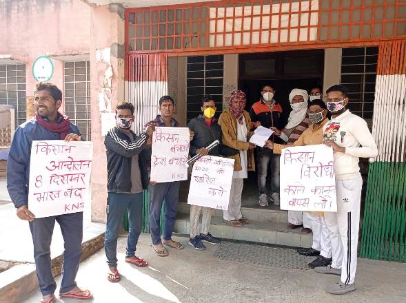 भादरा (हनुमानगढ़)। बन्द के समर्थन में भादरा उपखण्ड अधिकारी को राष्ट्रपति के नाम ज्ञापन सौंपा गया। जिसमें माँग की गई की मोदी सरकार को तुरंत प्रभाव से इन काले कानूनों को रद्द करना चाहिए व बिजली अधिनियम 2020 को भी खारिज किया जाना चाहिए, साथ ही साथ किसान हित में जल्द से जल्द कदम उठाए जाने चाहिए। इस दौरान क्रांतिकारी नौजवान सभा, मनरेगा मजदूर यूनियन हनुमानगढ़ व अन्य जन संगठनों के सदस्य मौजूद रहे।