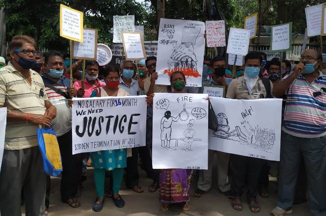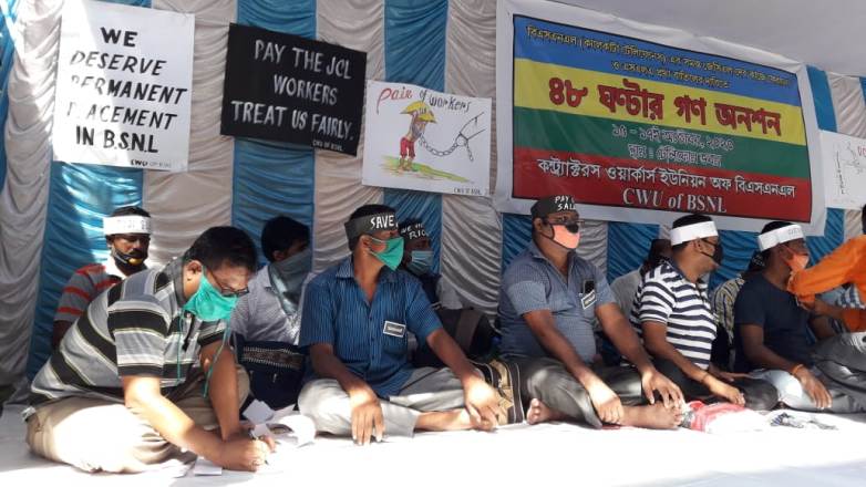 कोलकाता : बीएसएनएल ठेका मज़दूरों ने की भूख हड़ताल