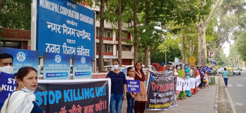 चंडीगढ़ की सफाई कर्मचारी आंदोलन की कन्वेनर रविता खेरवाल बताती हैं कि जब हम चंडीगढ़ में किसान भवन के सामने अपना कैम्पेन करते हैं तो वहां पुलिस आ जाती है और हमें कैंपेन करने से रोकती है कि आप लॉ एंड आर्डर (कानून व्यवस्था) में रुकावट डाल रहे हैं। रविता कहती हैं कि हम कोई कानून व्यवस्था में रुकावट नहीं डाल रहे हैं बल्कि हम अपने संवैधानिक अधिकार का उपयोग करते हुए शांति पूर्ण ढंग से अपना अभियान चला रहे हैं। और जो काम पुलिस प्रशासन को करना चाहिए वह नहीं कर रहा है उसे उसका कर्तव्य याद दिला रहे हैं ताकि हमारे किसी भाई की जान सीवर या सेप्टिक टैंक साफ़ करते हुए नहीं जाए। सीवर-सेप्टिक टैंकों की सफाई मशीनों से कराई जाए यह हमारी पहली मांग है। इसके अलावा ये जो विधवाएं आई हैं इनके पतियों की मौत सीवर सेप्टिक टैंक साफ़ करते हुए हुई है इनको सुप्रीम कोर्ट के आदेश के अनुसार दस लाख का मुआवजा मिले और इन्हें पेंशन दी जाए,यह दूसरी मांग है। इसके लिए एस.एच.ओ. ने डी.सी. से मीटिंग करवा कर समस्या का हल निकलने का आश्वासन दिया। यहां कैंपेन में युवाओं और महिलाओं की संख्या अधिक थी।